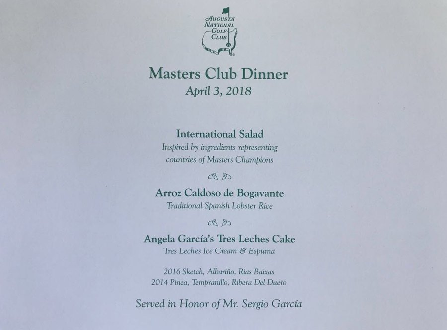 Masters 2018 Sergio Garcia S Champions Dinner Revealed At Augusta Sbnation Com